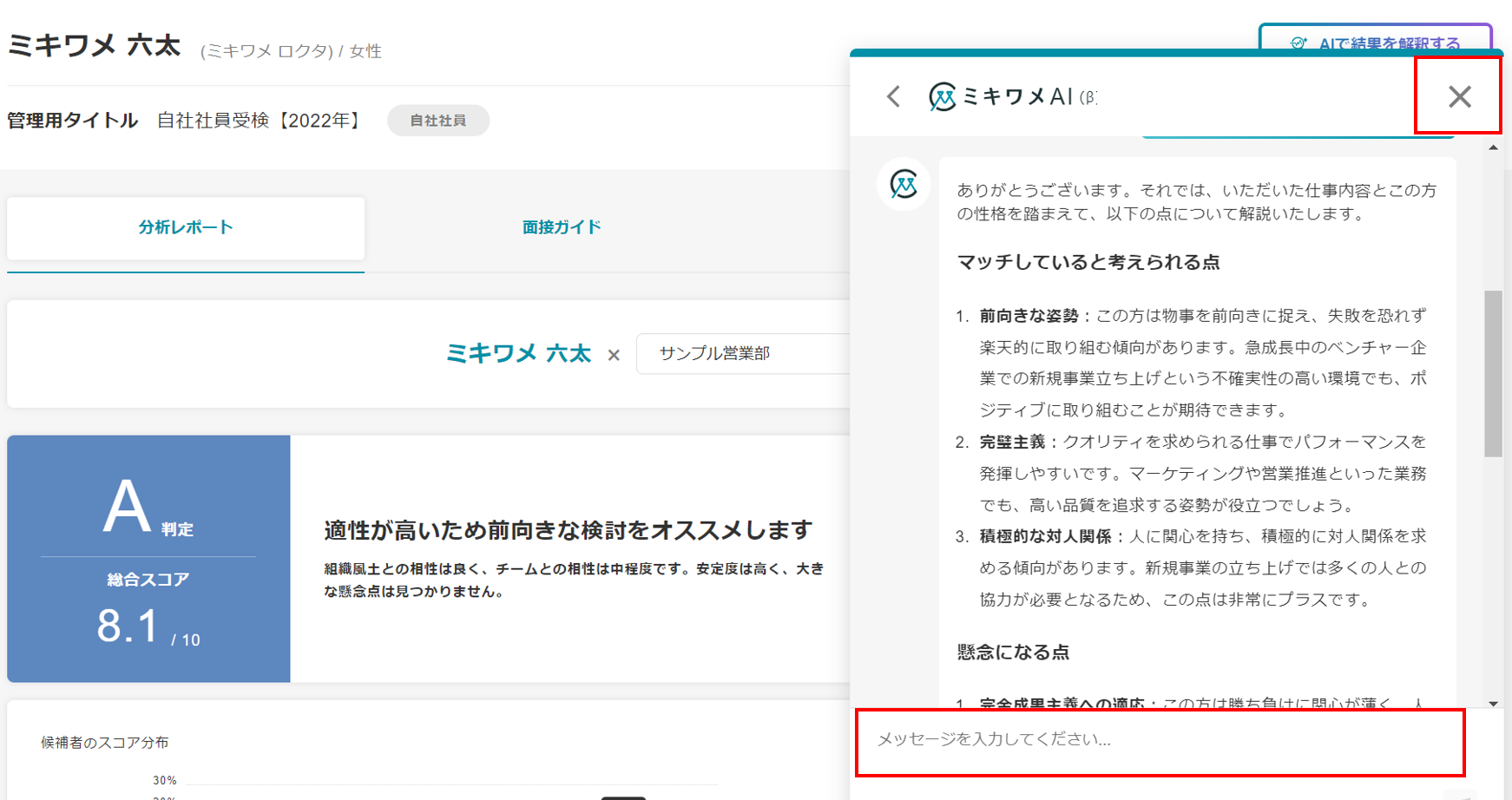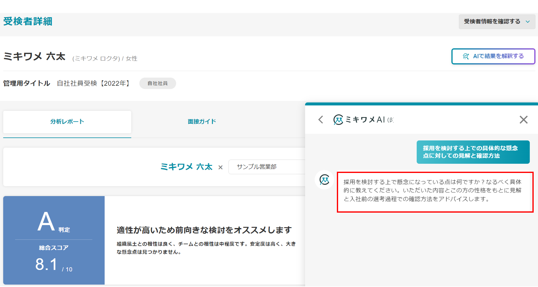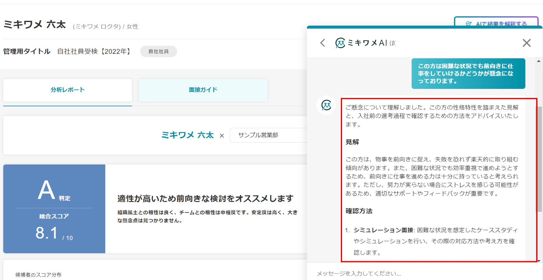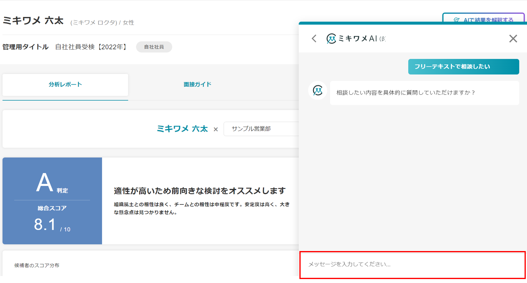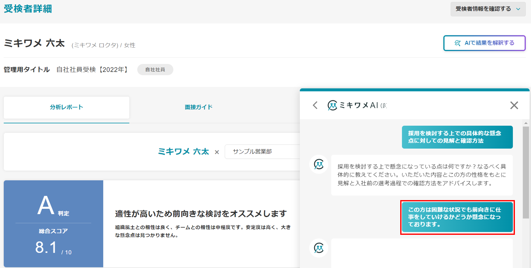 ミキワメAIの詳しい操作方法は(適性検査でミキワメAIを活用する)をご参照ください。