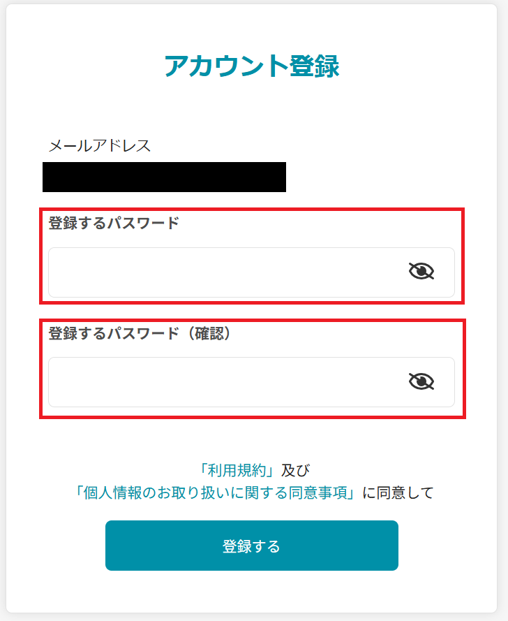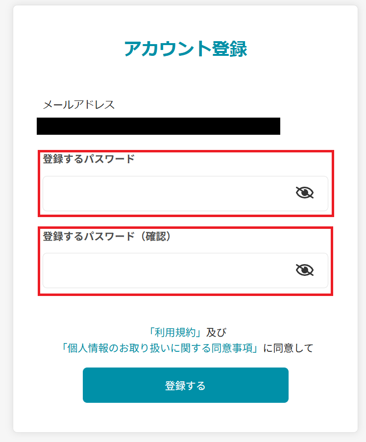 登録するパスワードは、英字、数字、記号をすべて組み合わせ、8文字以上でご設定ください。