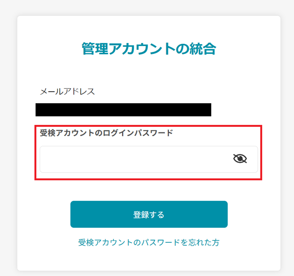 3-2. 管理アカウント招待時のメールアドレスで受検アカウントが登録済の場合 - 管理アカウントの登録状況・再発行案内