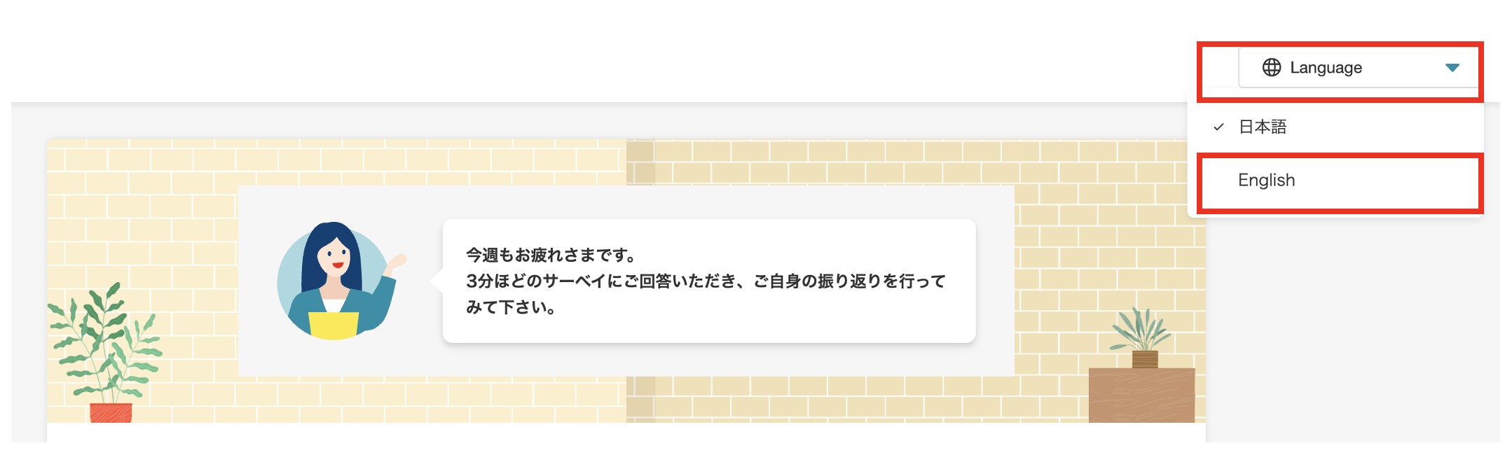 ミキワメAIでは、従業員サーベイを英語で回答いただくことが可能です。
