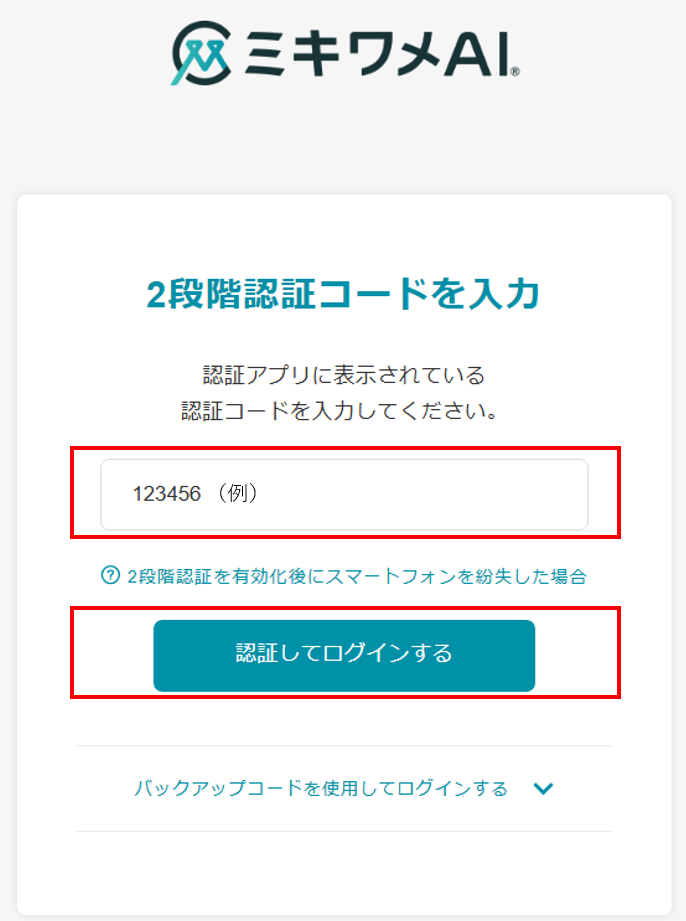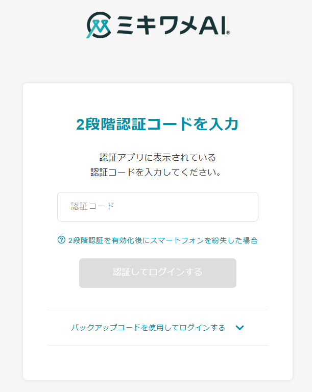 ※コードが確認できない場合は、バックアップコードによるログインが可能です。