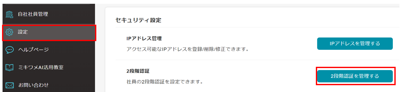 ミキワメでは、企業ごとに2段階認証を「任意」にするか「必須」にするかを設定できます。